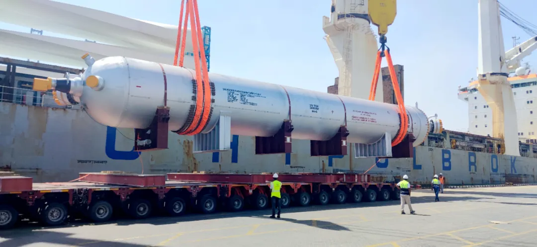 近日,中国化学所属中国五环工程有限公司承建的埃及NCIC三期化肥项目迎来新进展,首件关键设备——氨合成塔顺利运抵现场,该设备也是本项目中最重的单体设备。